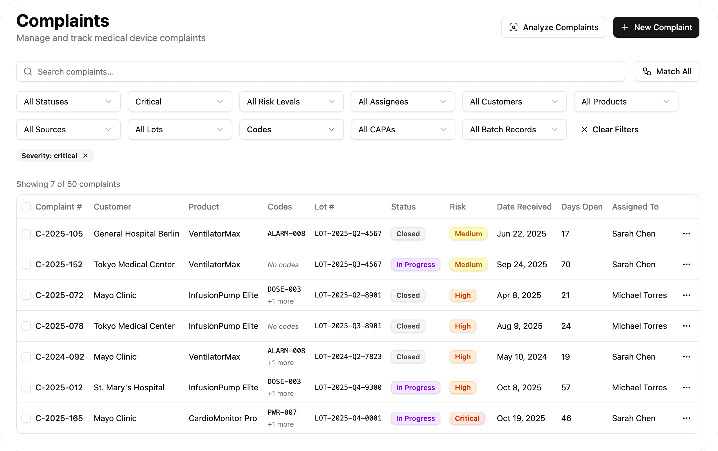 Cytodyme’s AI-powered platform manages complaint intakes, completes risk assessments, generate response letters and MDR reports, while tracking surfacing trends.